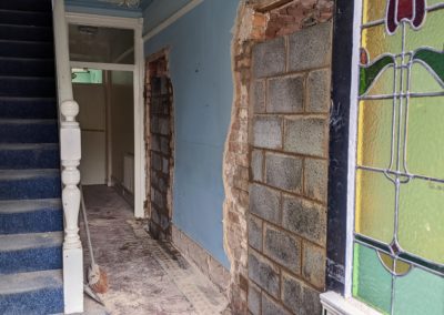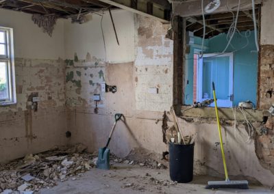 May 2023 by David Dean | May 30, 2023 | Redevelopment Doorways between Y Dderwen and Bod Eryl are blocked off and plaster started to be removed from Bod Eryl walls.
